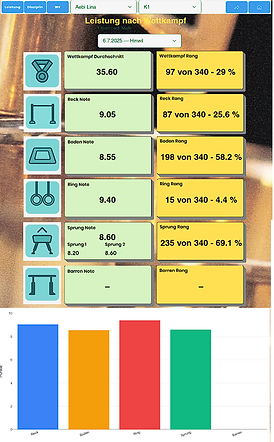 Die Disziplinen zeigen die Leistungen pro Gerät im Detail.