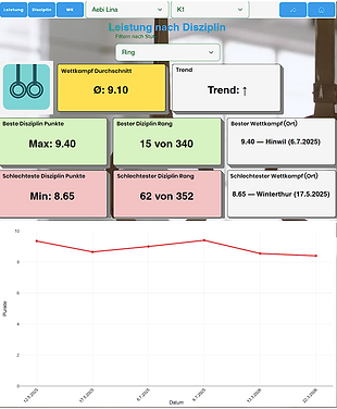 von der durchschnittlichen Punktzahl bis zur Entwicklung über mehrere Wettkämpfe.